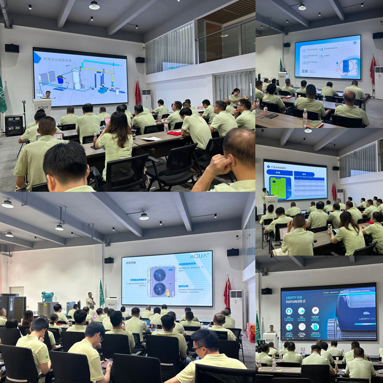 培训的核心内容涉及技术培训、业务交流、分组讨论等多个环节,其中技术培训重点覆盖Waternics水武仕珍珠岩过滤器、AQUA爱克自动反冲洗阀门、AQUA爱克直流变频空气源热泵、各款中压紫外线设备及各类设备控制系统等产品,旨在全方位提升员工理论水平和专业技能。