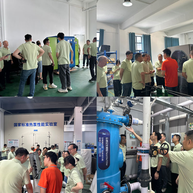 在培训会议间隙,相关负责人便带领员工深入爱克热泵工厂,探访现代化生产线和测试泳池的设备机房,并零距离体验了Waternics水武仕珍珠岩过滤器的应用效果,感受其真实魅力。