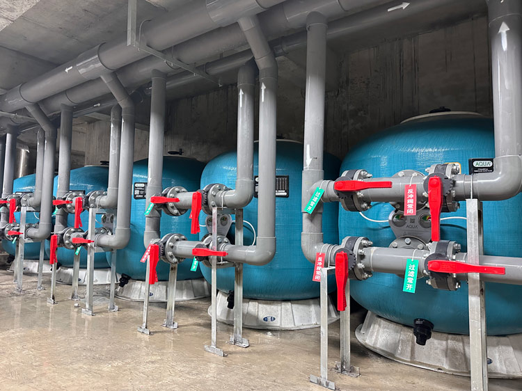 过滤砂缸凭借多层石英砂过滤结构,过滤精度高达5–10微米,可高效去除悬浮物与微生物。同时,其反冲洗流程仅需2–3分钟,较传统设备效率提升40%,显著降低后期运维人力与时间成本,为项目长期稳定运行提供保障。